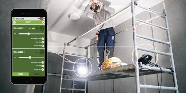 TORAN 系列带 App 控制的建筑泛光灯,适用于各类建筑工地、家庭 DIY 用户、技术工人,以及绘画师与喷漆师。通过 App 并借助蓝牙连接,不仅可灵活调节灯光亮度,还能自定义泛光灯的其他功能;该 App 可在 Apple App Store 或 Google Play Store 免费下载。