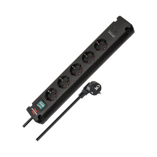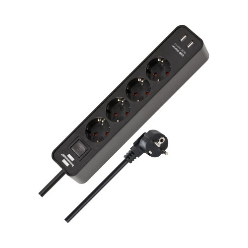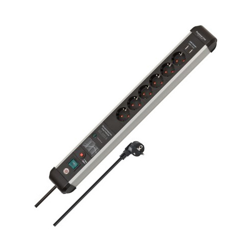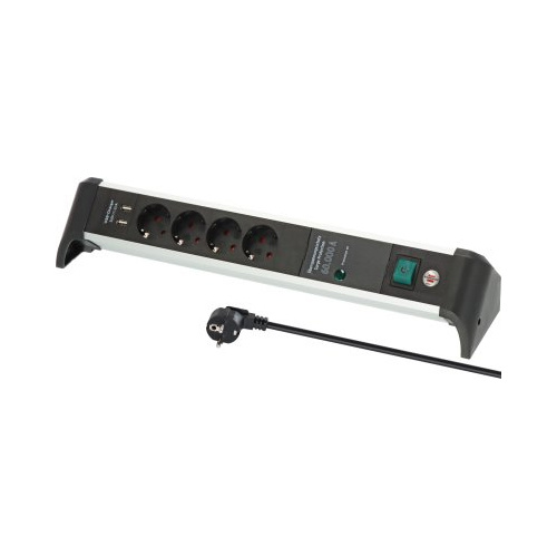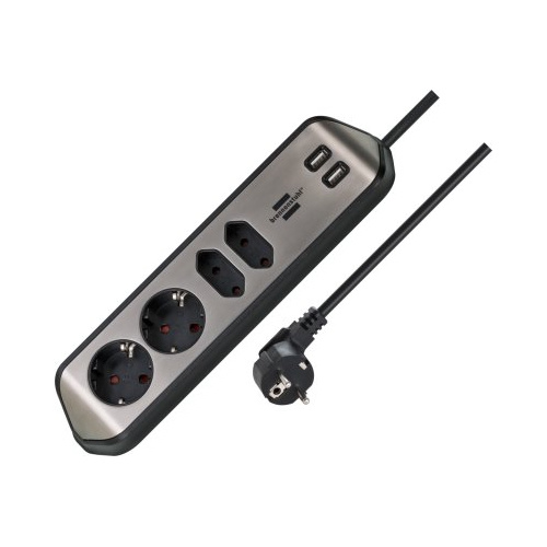 百能斯图estilo 系列转角插线板(带 USB 充电功能),4 位接口设计(含 2 位安全插座 + 2 位欧式插座),颜色为银 / 黑配色